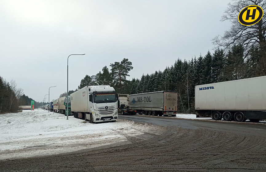«Литовское направление по-прежнему остается наиболее загруженным на пути в ЕС, здесь оформления ожидают 1070 большегрузов. За прошедшие сутки контрольные службы пункта пропуска "Мядининкай" ("Каменный Лог") приняли 21 фуру из 500 возможных, а это всего 4% от нормы, т.е. менее 1 авто из 20 в час. Сотрудники остальных литовских погранпереходов пропустили на свою территорию лишь 27% грузовиков», – сообщили в ГПК.