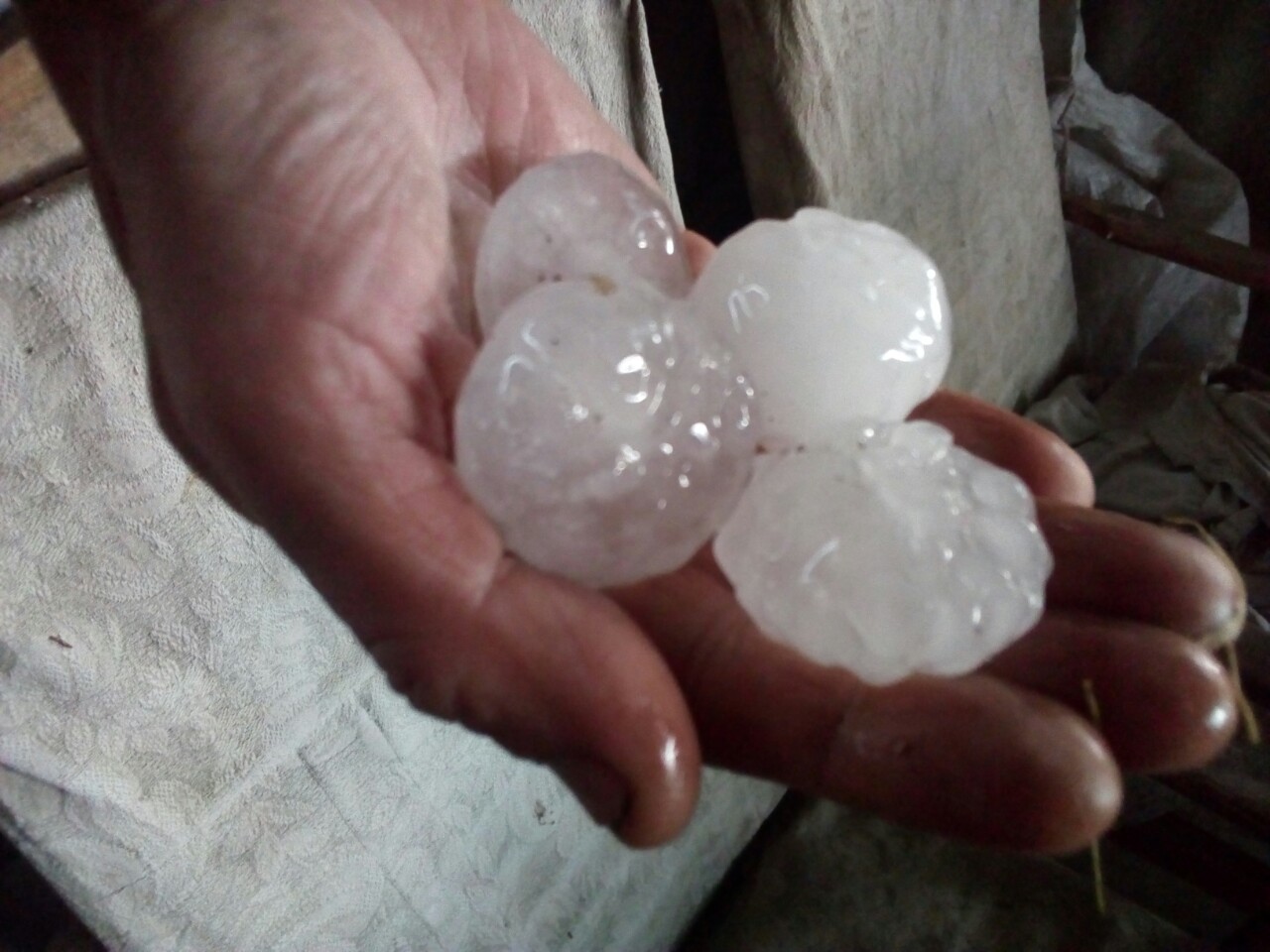 В Кобринском районе, пусть меньше, но также встречали градины - гиганты.