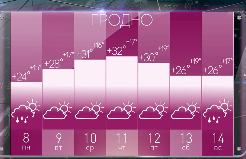 Погода в Гродно на неделе с 8 по 14 июля: