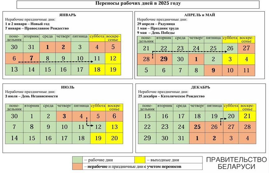 Как белорусы будут отдыхать и работать в 2025 году, уточнили в Правительстве