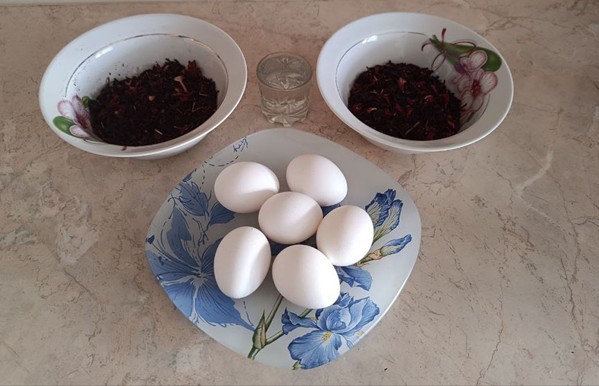 Красим яйца с помощью каркаде