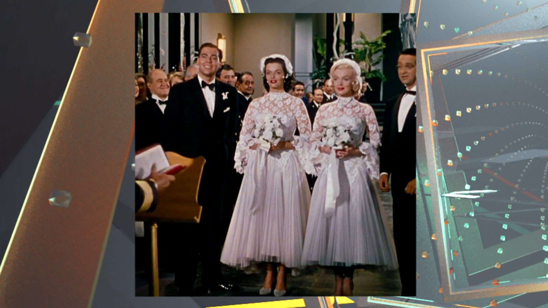 «Джентльмены предпочитают блондинок». В знаменитой музыкальной картине две девушки выходят замуж в одинаковых свадебных нарядах. Кружевной верх, корсет, подчеркивающий талию, и длина миди, добавляющая кокетства и авантюризма героиням.