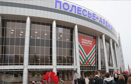 И сегодня же двери для мозырян распахнул физкультурно-оздоровительный центр «Полесье-Арена». Это тоже часть марафона. Основной зал арены рассчитан более чем на 2 тысячи зрителей. И сегодня все места были заполнены. На сцене – масштабное красочное шоу «Время выбрало нас». Это история о том, как музыка и слово способны вызвать искренние патриотические чувства. На этот раз еще и с праздничными оттенками.