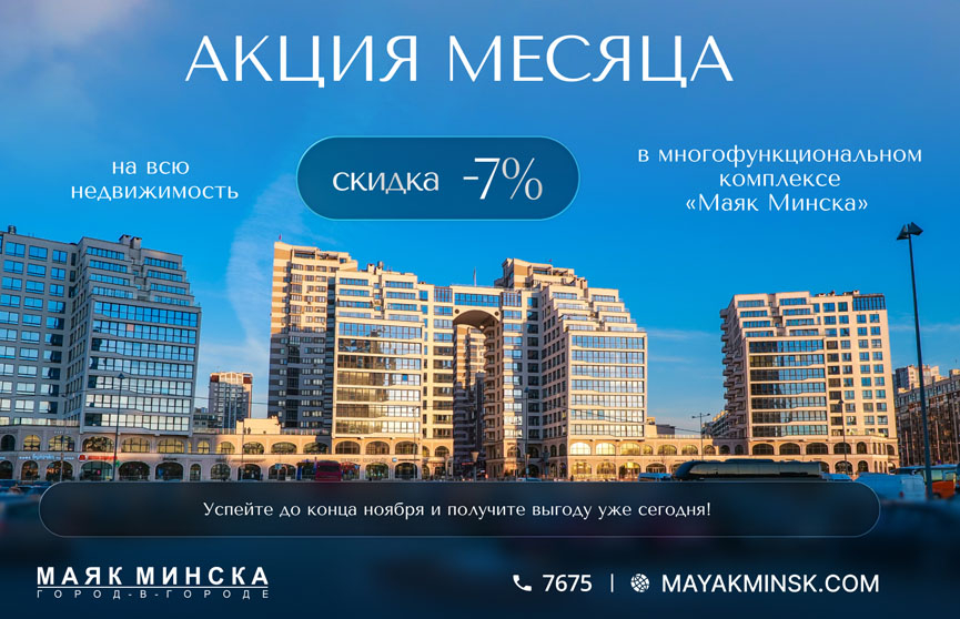 Только с 21 по 30 ноября 2025 года получайте супервыгоду при покупке недвижимости в многофункциональном комплексе «Маяк Минска» – предложения «Черной пятницы» и дополнительная скидка 7% за быструю оплату суммируются!