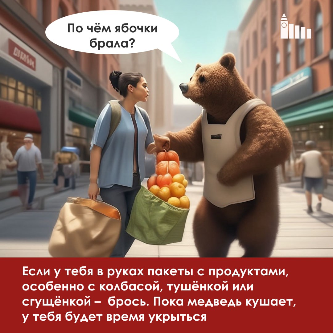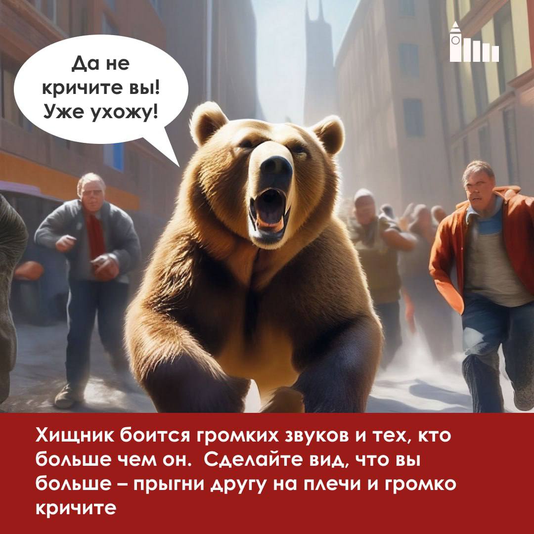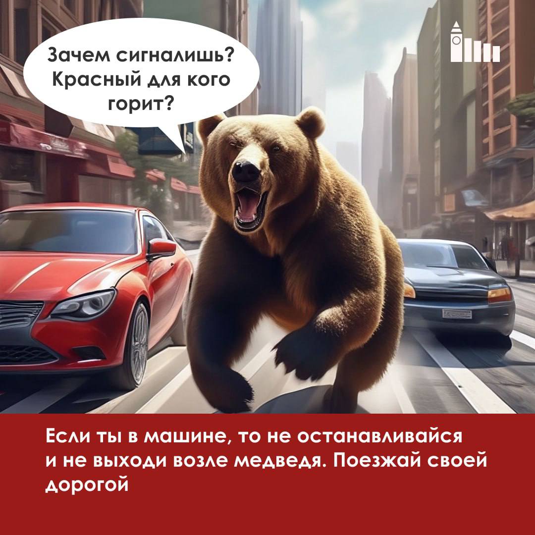 Мэрия Красноярска, в свою очередь, опубликовала карточки с советами «Как реагировать на встречу с медведем».