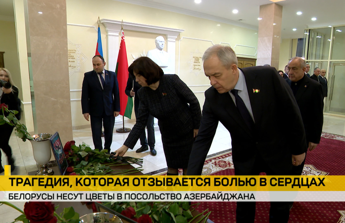 Утром диппредставительство посетила парламентская делегация. Председатели Совета Республики и Палаты представителей оставили искренние слова поддержки и сопереживания народу братского Азербайджана. После Наталья Кочанова и Игорь Сергеенко пообщались с послом республики. Эта трагедия отзывается болью в сердцах белорусов.
