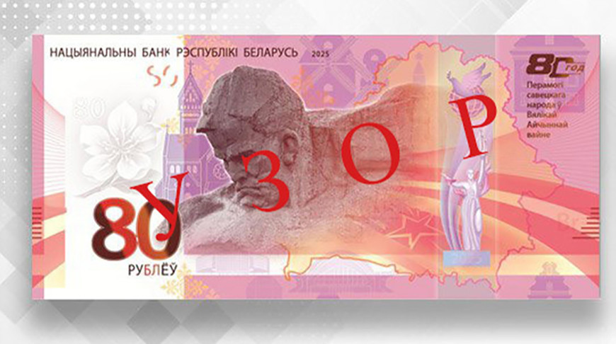 Такого номинала нет ни в одной стране мира! Ярко-розовая 80-рублевая купюра «80 год Перамогі савецкага народа ў Вялікай Айчыннай вайне» выпущена символичным тиражом – 80 тысяч купюр. На ней изображен главный монумент Брестской крепости – «Мужество». На обратной стороне – руки матери и ребенка на фоне национального орнамента, изображения архитектурного комплекса «Ворота Минска» и цветка яблони.