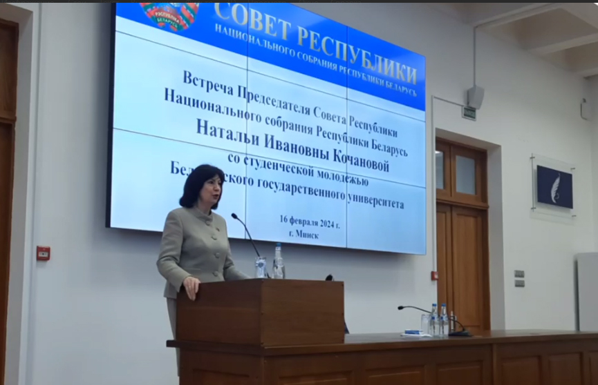 Председатель Совета Республики Национального собрания Республики Беларусь Наталья Кочанова провела встречу со студентами Белорусского государственного университета. Об этом сообщает Telegram-канал верхней палаты парламента.