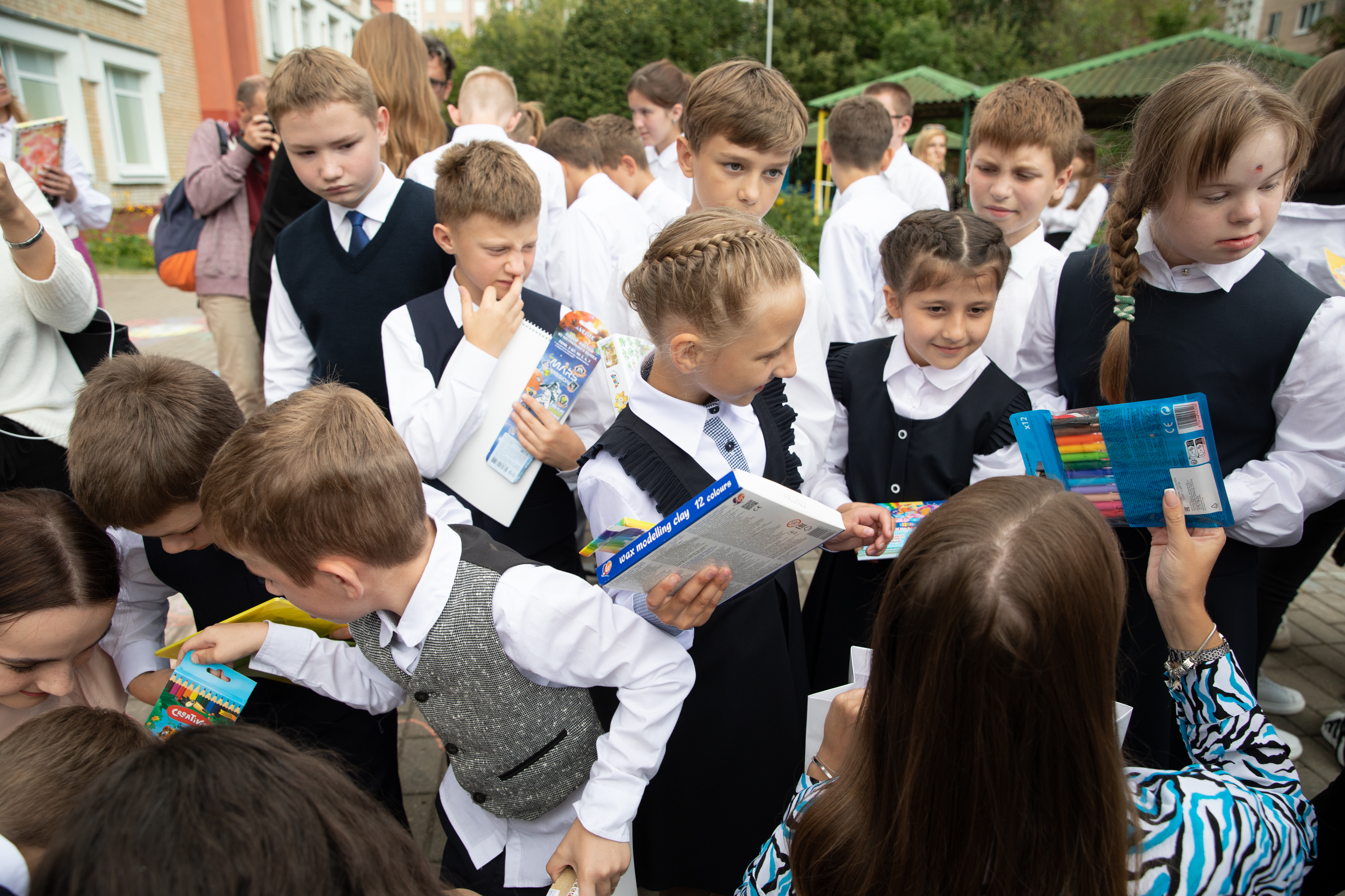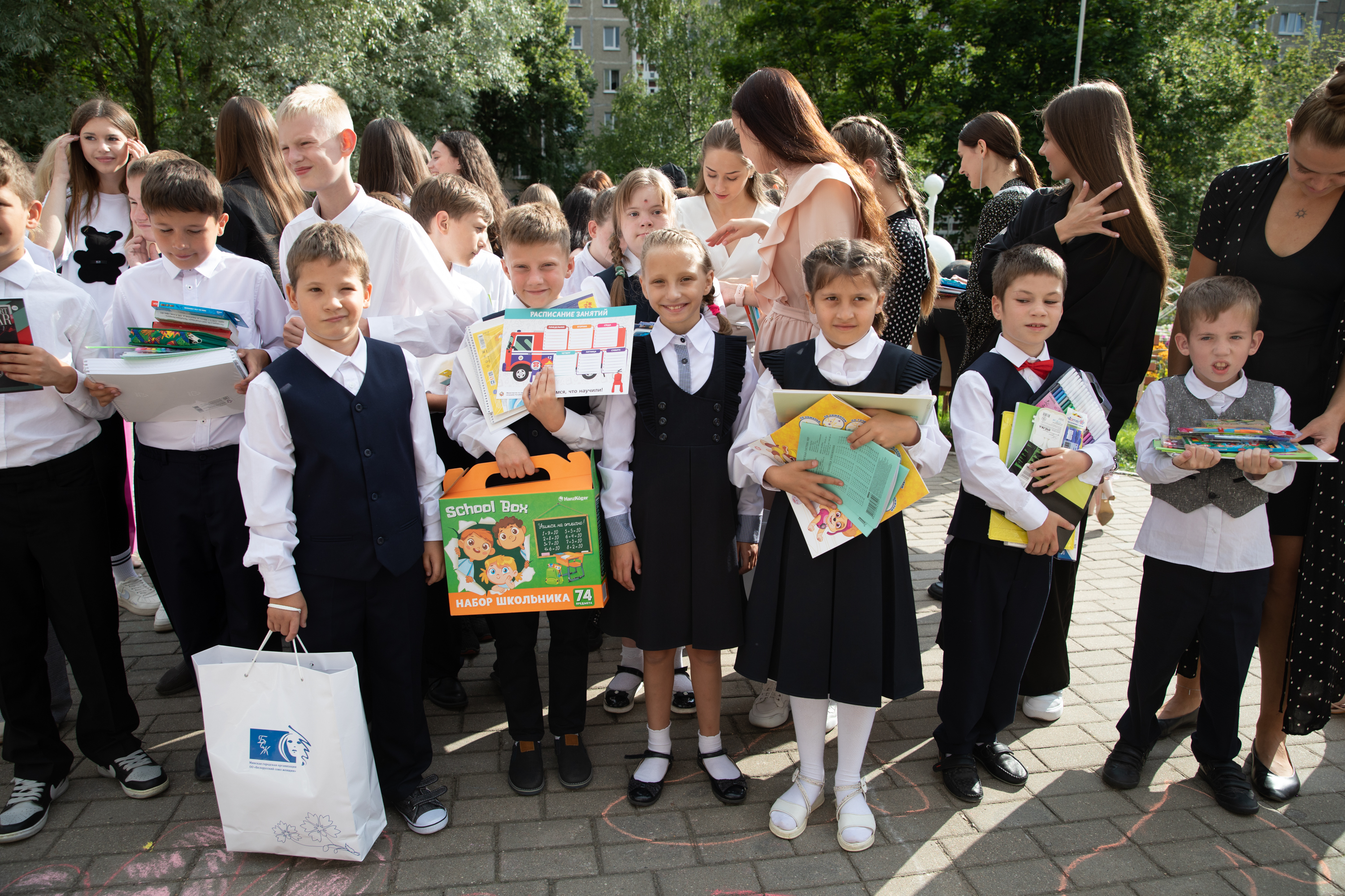 Далее все товары были собраны в Белорусском союзе женщин, ведь там точно знают, что действительно нужно детям. Подарки с канцелярией девушки повезли с Детский дом №5.