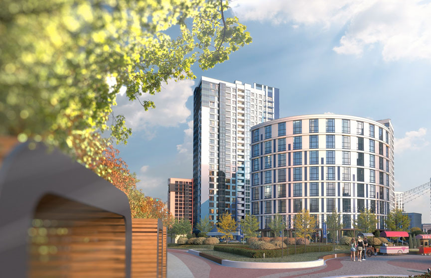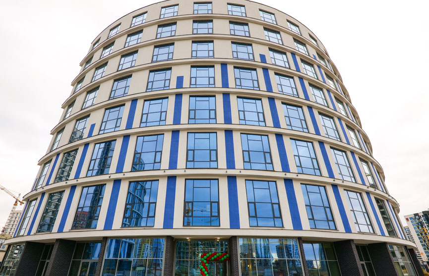 Эти дома – квинтэссенция философии «Минск-Мира». Они расположены в квартале «Хэппи Плэнет», настоящем «зеленом сердце» комплекса. Их дугообразная форма и фасады в чистой бело-синей гамме, напоминающие морскую гладь и чистоту неба, стали архитектурной доминантой. Это не типовые здания, а арт-объекты, в которых приятно и престижно жить.