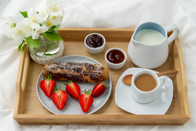 Начните этот день с вкуснейшего завтрака в постель. Для этого вам понадобится красивый поднос, на который, помимо самого завтрака, можно поставить свечу. Это добавит моменту теплоты. Помимо свечи, придать праздничной атмосферы поможет любая тематическая атрибутика, будь то маленькие валентинки, салфетки с сердцами и др. Что касается ужина, то его можно провести не только дома, но и в вашем любимом заведении. Возможно ваш мужчина хотел куда-то пойти, но так и и не нашёл времени для этого. Тогда 14 февраля будет отличным поводом посетить это место. Чтобы избежать накладок, лучше заранее забронировать стол.