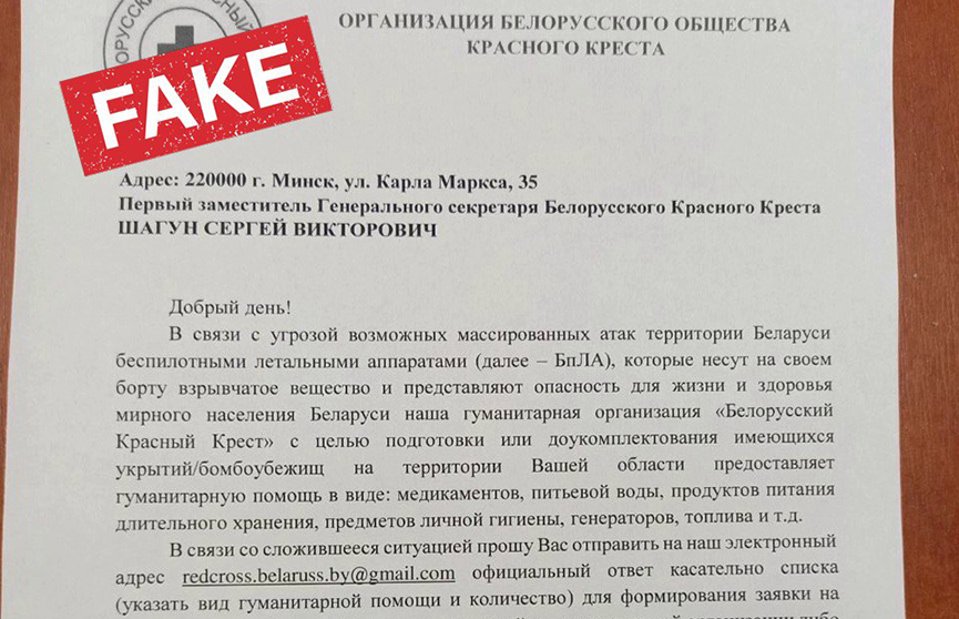 На белорусские предприятия начали приходить письма, в которых сообщается, что на нашу страну якобы готовится массированная атака беспилотниками. Такие сообщения отправляют украинские ЦИПСО от имени Белорусского общества Красного Креста. Эта информация является фейковой!