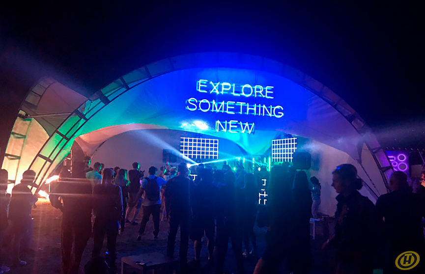 В этом году территория фестиваля заметно увеличилась. Зона оупен-эйра раскинулась и по другую сторону проезжей части. Там установили одну из сцен, фотозону, палатки с едой, ярмарку ремёсел, спортивные и детские площадки. Раньше же фестиваль умещался вдоль набережной озера Дривяты.