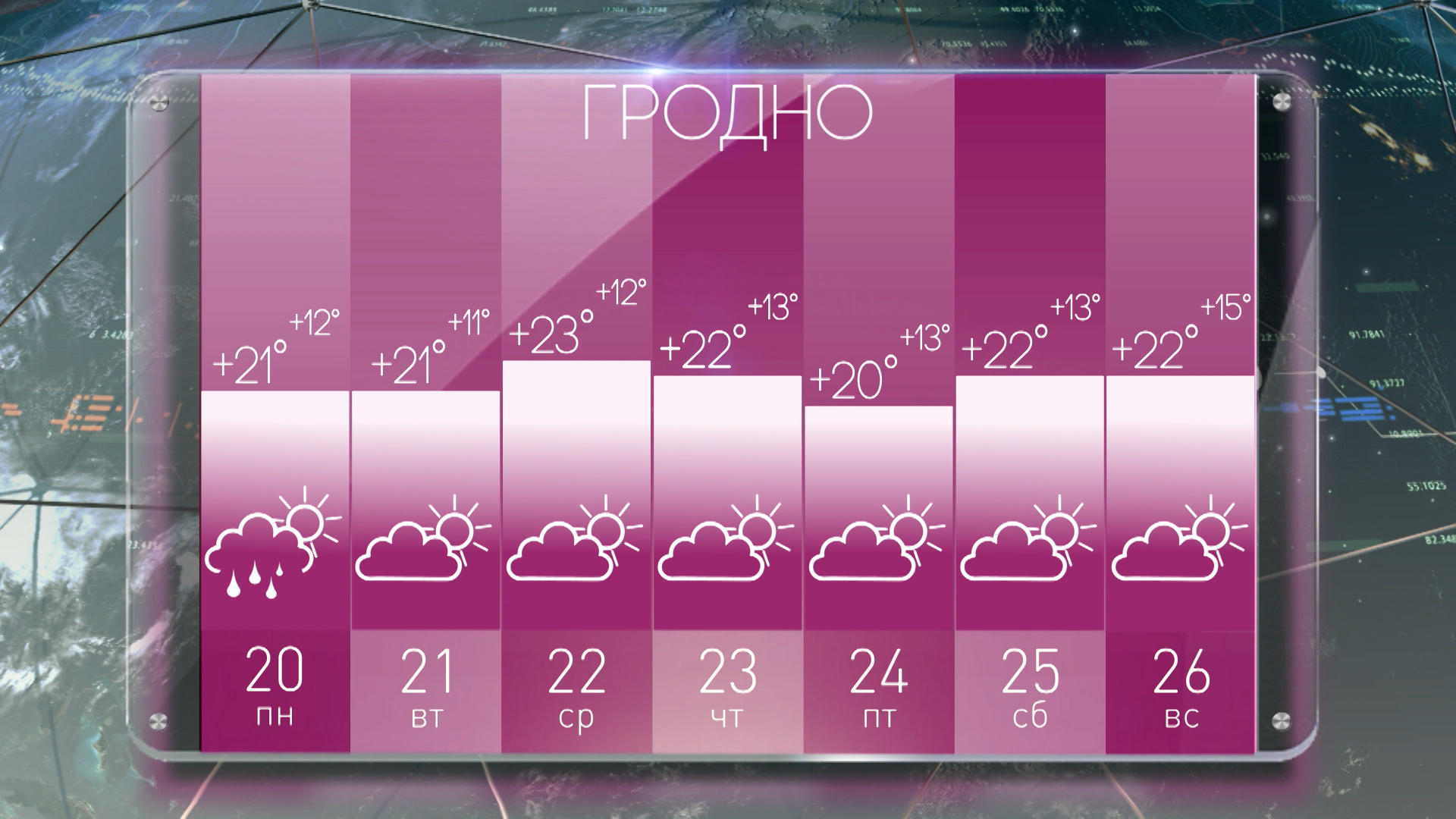 Погода в Гродно на неделю с 20 по 26 июня: