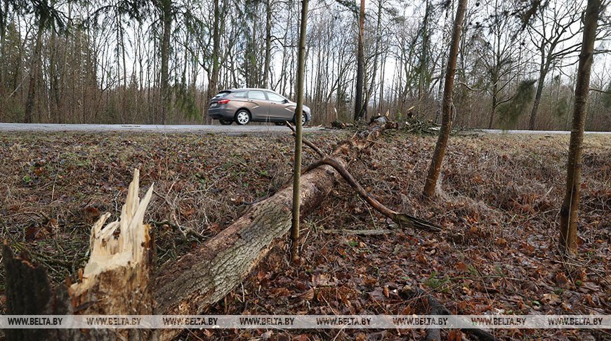Сотрудники МЧС в Минске убирают конструкции, упавшие на дороги, распиливают поваленные деревья. Коммунальные службы также работают.