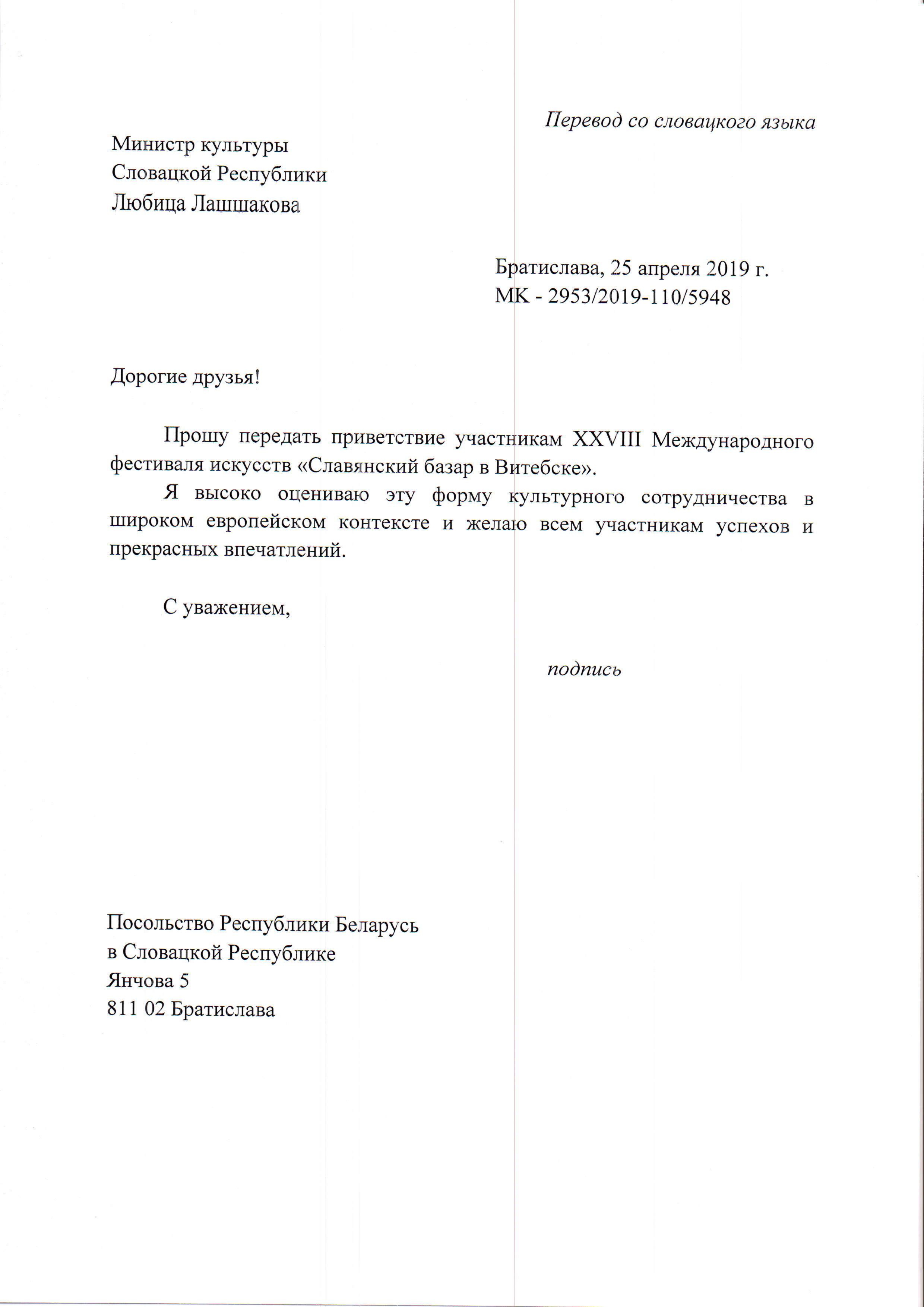 В адрес гостей и участников Международного фестиваля искусств «Славянский базар в Витебске» официальные лица иностранных государств направляют приветственные слова. Поздравительные послания уже получены из Кыргызстана, Китая, Сербии, Словакии.