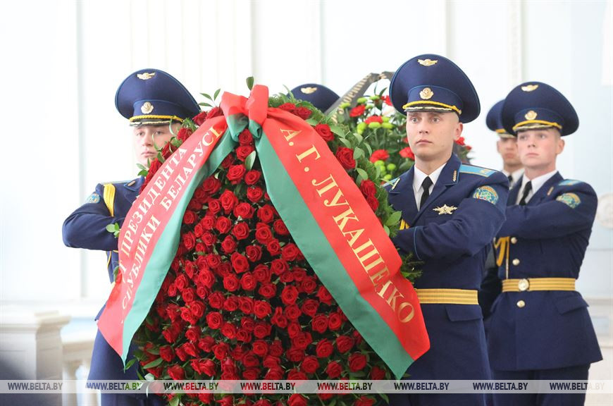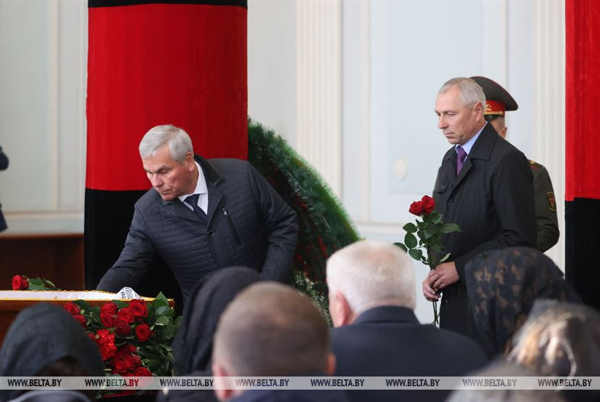 И, конечно же, венок от Главы государства. Его в траурный зал внесли бойцы роты почётного караула. Их участие в церемонии – это часть воинского ритуала. Попрощаться с героем, который до конца остался верен присяге и служебному долгу, приехали высшие должностные лица страны – глава Совета Республики, Администрации Президента, Совета безопасности и Комитета госконтроля, представители всех силовых структур, министерств и ведомств и просто неравнодушные белорусы. Пришли отдать дань памяти офицеру, подержать его родных и сказать спасибо за то, что воспитали настоящего патриота. Эта чудовищная трагедия объединила белорусов. И сегодня все как один говорят – подобное не должно повториться. А те, кто встал на путь террора, берёт или призывает брать в руки оружие, должны нести максимально жёсткую ответственность.
