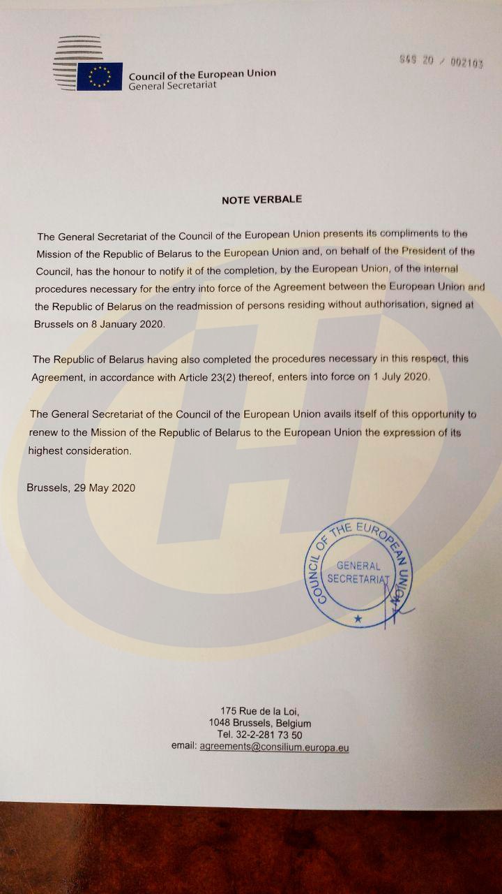 Белорусское посольство в Брюсселе получило ноты (официальные уведомления) об утверждении соглашений по упрощению визового режима и реадмиссии. По правилам, соглашения вступают в силу в первый день второго месяца с момента официального уведомления. Это значит, что с 1 июля шенгенские визы для белорусов будут стоить €35.