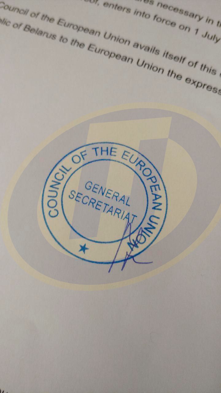 Как сообщает БЕЛТА со ссылкой на начальника управления информации и цифровой дипломатии – пресс-секретаря МИД Анатолия Глаза, официальное уведомление от Евросоюза о завершении внутренних процедур по ратификации соглашений поступило в МИД сегодня, 29 мая.