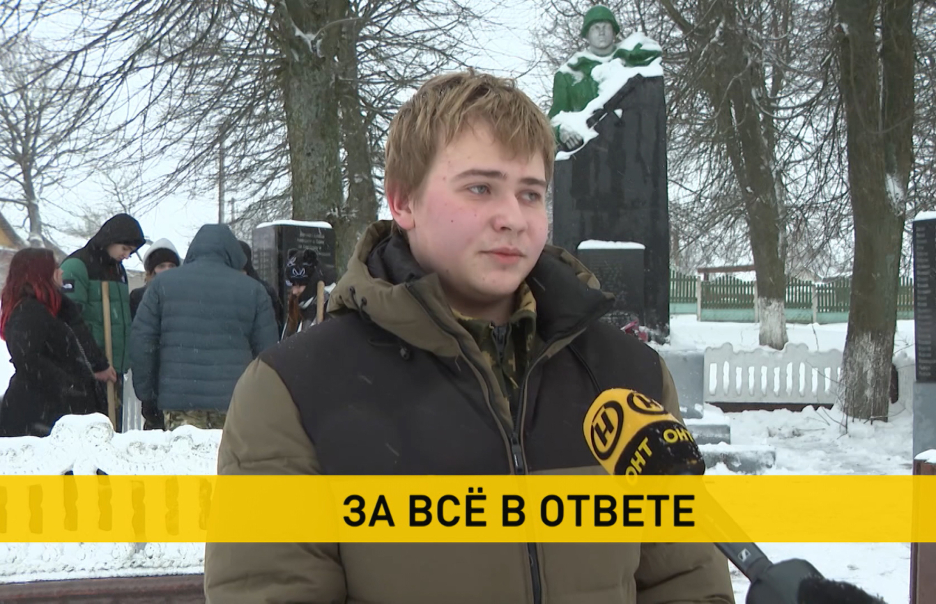 Уроки позади, но для школьников агрогородка Тетерино – не время отдыха. С обеда шел снег, значит дел сегодня много. Наводить порядок отправились на священное для каждого место. Братская могила в центре деревни. Здесь покоится 27 советских воинов и десятки мирных жителей, погибших в годы Великой Отечественной. Не забывать – не просто слова, а часто личная история.