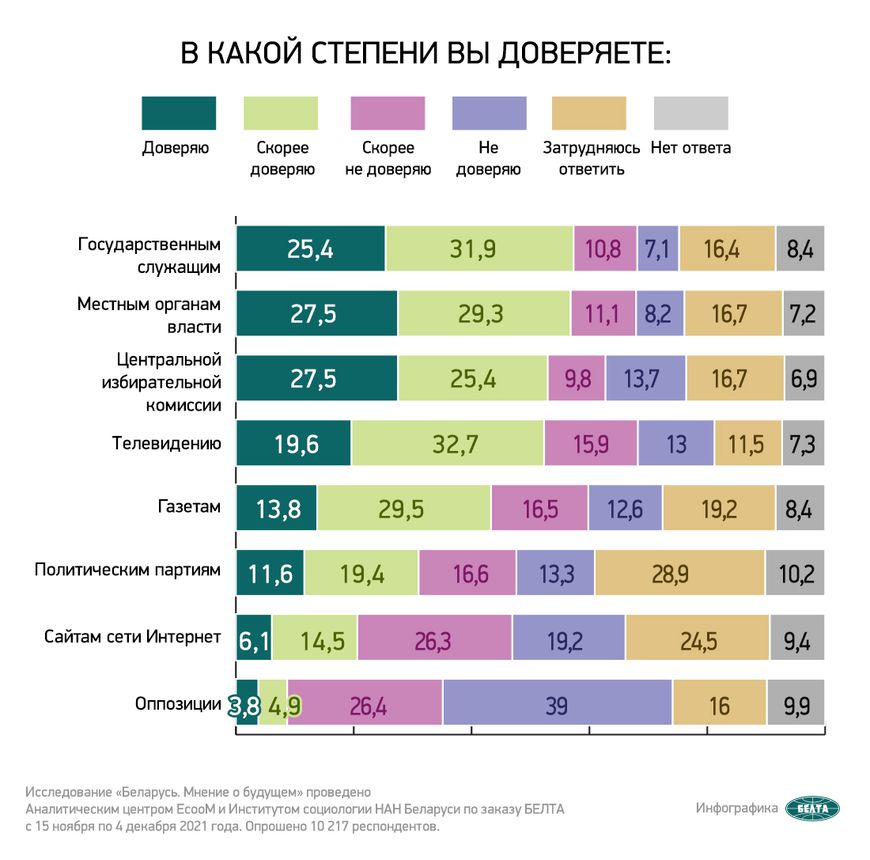 Соцопрос показал, сколько белорусов доверяют госслужащим и местным органам власти