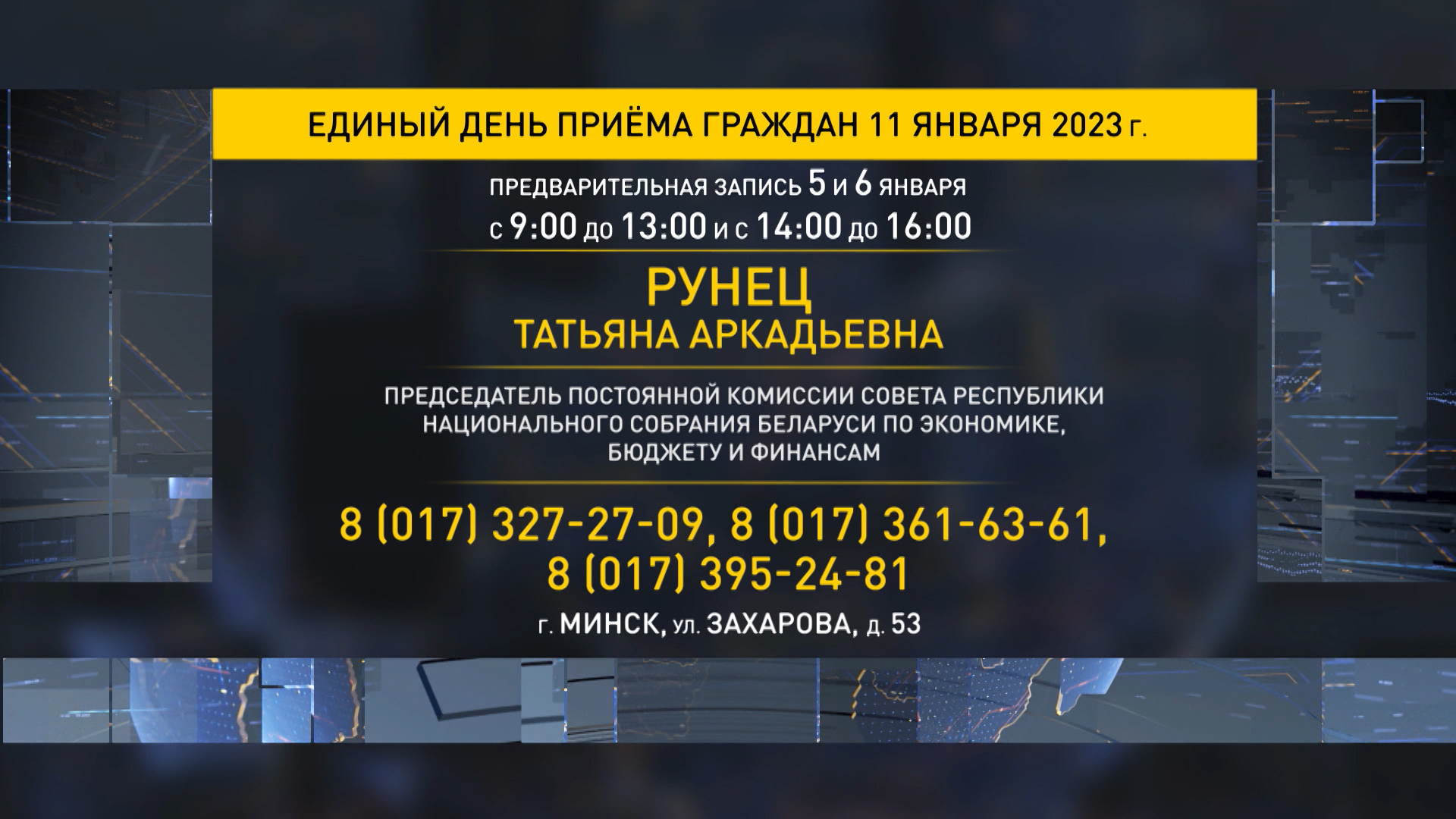 С 10 утра на вопросы граждан ответит и председатель постоянной комиссии по экономике, бюджету и финансам Татьяна Рунец.