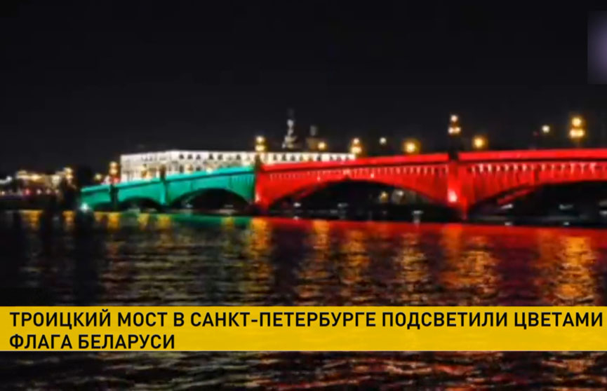 Троицкий мост в Питере подсветили цветами белорусского флага