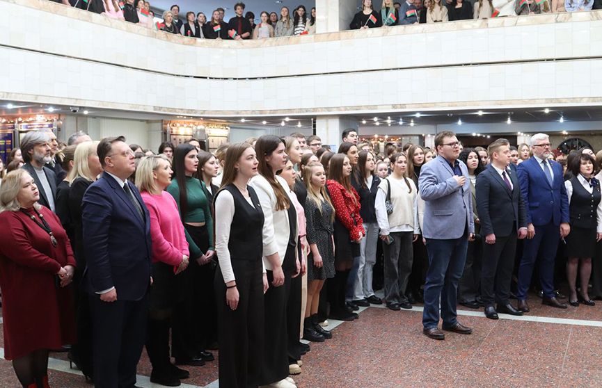 Такая акцыя праходзіць упершыню, яе ініцыятар – кафедра моўнай камунікацыі. Не абавязкова быць зоркай сцэны і мець выключныя вакальныя здольнасці. Галоўнае – шчырасць. Спяваць гімн ва ўнісон плануюць і далей.