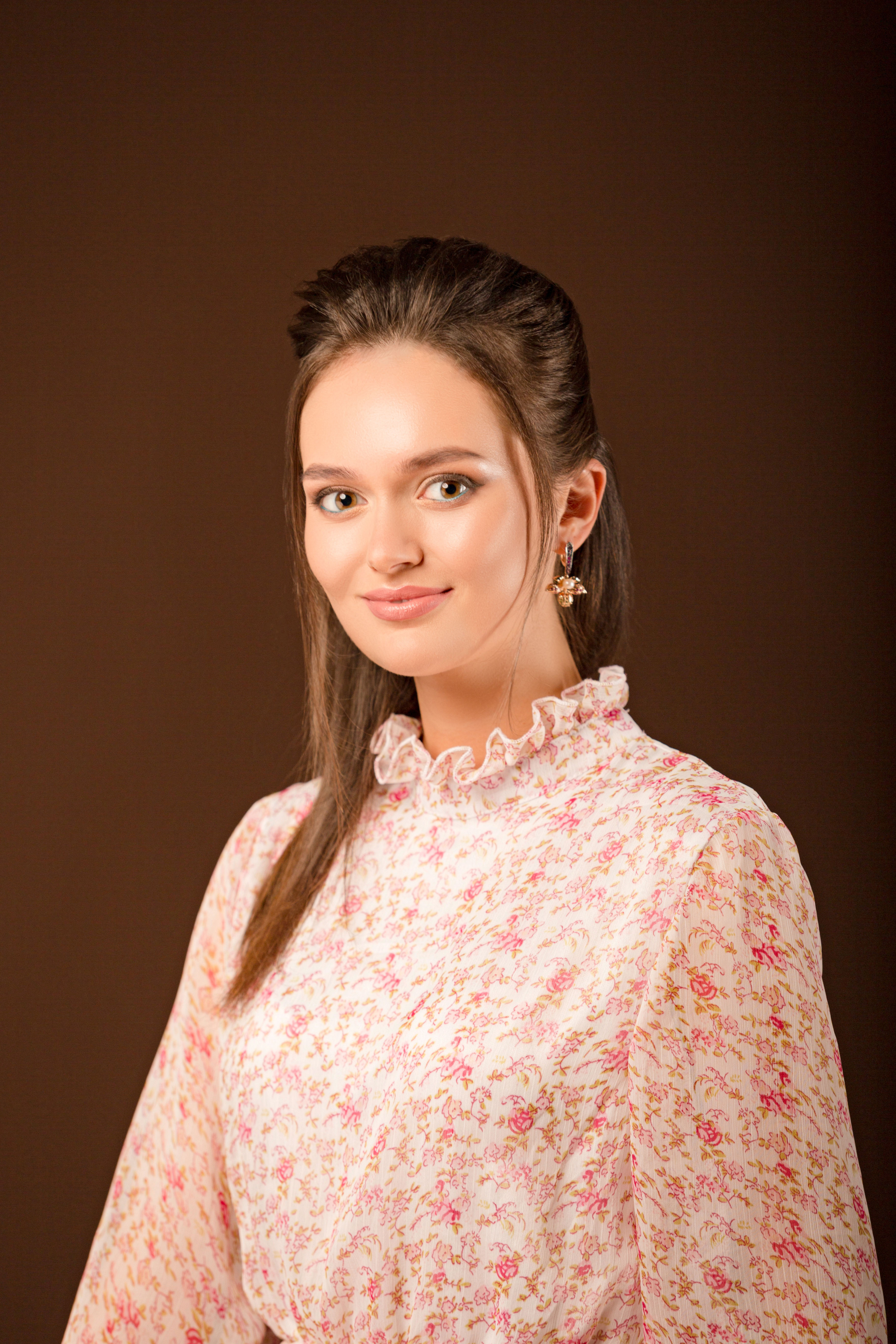 Студентка 5-го курса факультета английского языка МГЛУ. Владеет английским и французским языком. Была волонтером во время проведения II Европейских игр. В качестве волонтера посещает детские дома и помогает пенсионерам. Любимые занятия – чтение и путешествия. Увлекается психологией.