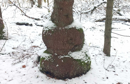 В пуще была найдена необычная ель-четырехзубец. Обычно у елей одна верхушка. У этой же ствол в одном месте как бы разветвляется на четыре «самостоятельных» дерева.