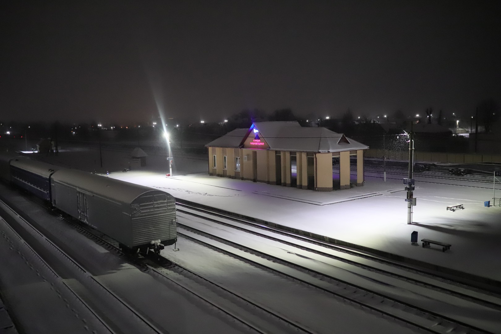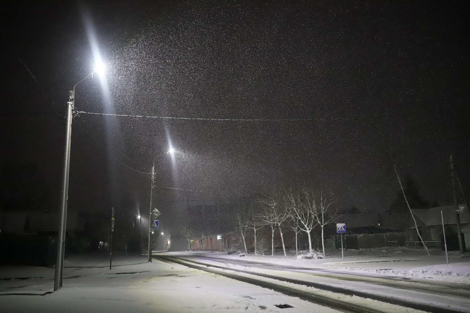 Снег в областном центре шел все воскресенье, однако из-за положительной температуры, а также многочисленных пешеходов и транспорта, он держался не очень долго. Вечером ситуация изменилась, а ночью в Гомель и вовсе пришла «зима».
