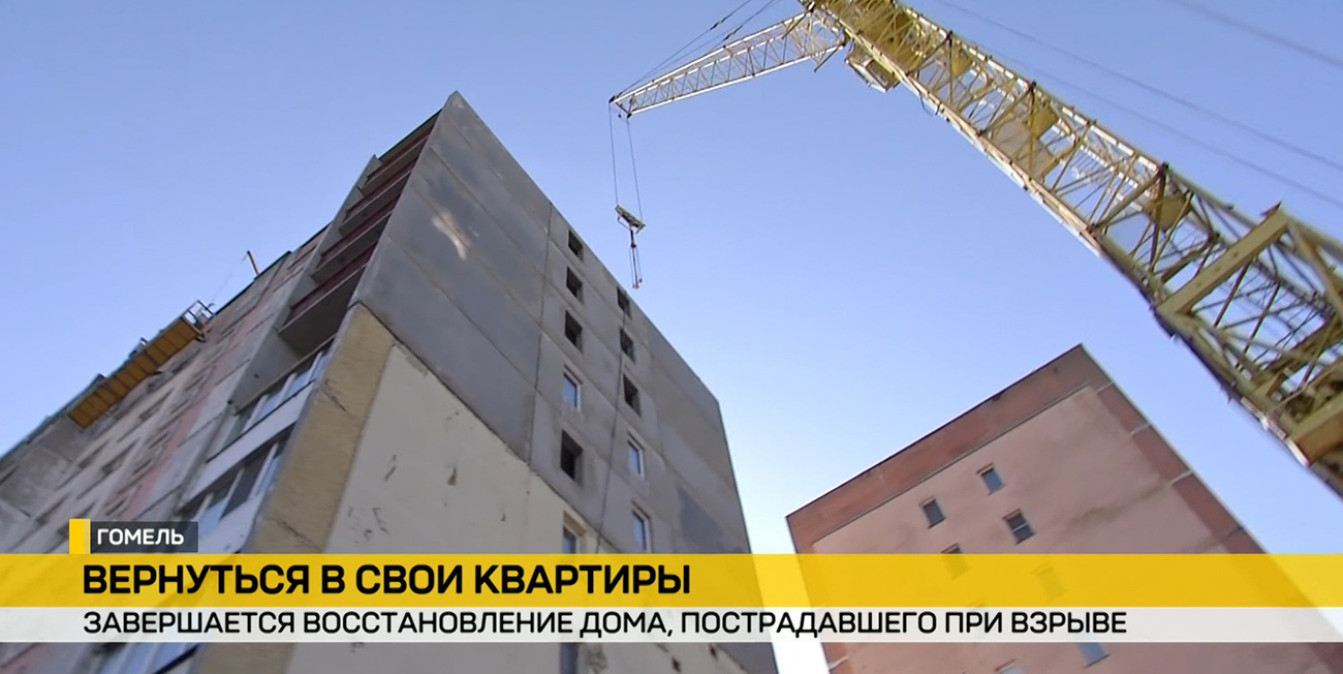 В Гомеле завершается монтаж конструкций в доме, пострадавшем от взрыва газа