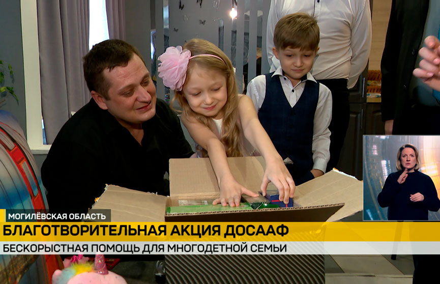Благотворительная акция ДОСААФ продолжается. Многодетной семье Кирилович из Осиповичей помогли и финансами, и продуктами.
