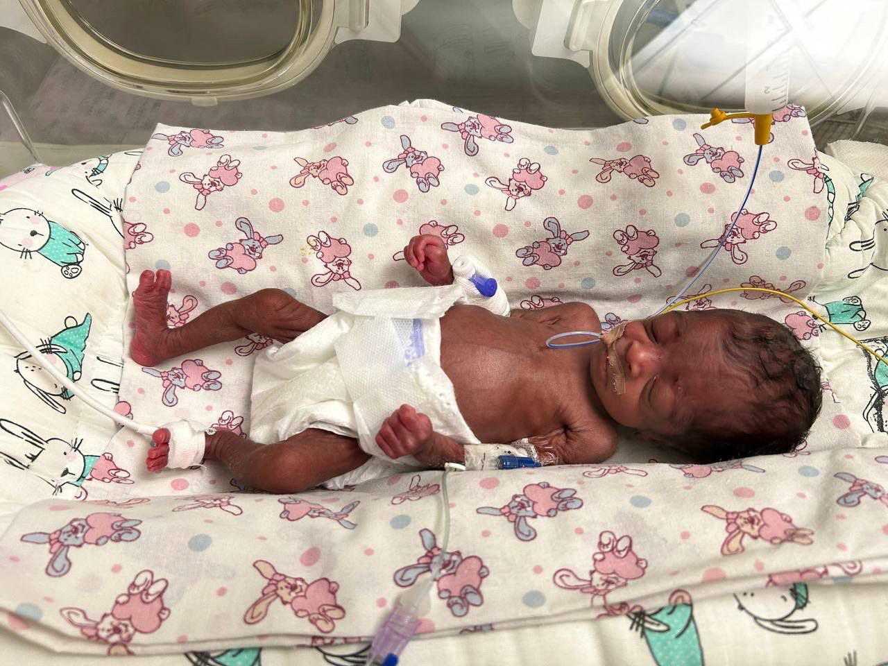 Родители малышки, которую назвали Сабина, родом из Гвинеи. Крошка появилась на свет в конце ноября прошлого года в ГУ РНПЦ «Мать и дитя» на 23-24 неделе гестации. Маме новорожденной пришлось делать экстренное кесарево сечение. При рождении ребенок весил всего 600 граммов.