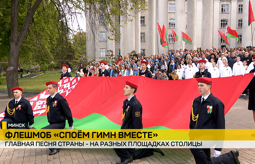 Беларусь готовится отметить еще один важный праздник – День государственных герба, гимна и флага. Отмечается ежегодно во второе воскресенье мая. Программы стартовали сегодня. В Минске – флешмоб «Споем гимн вместе!».