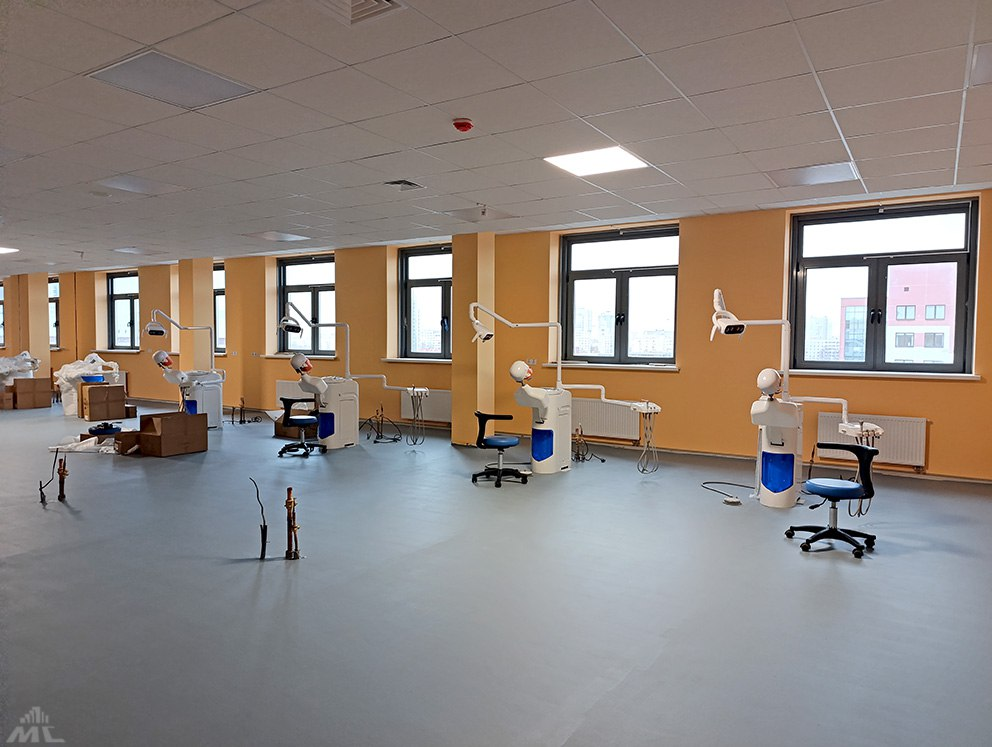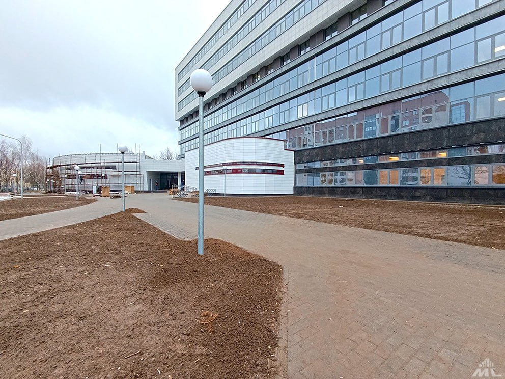 Как сообщается, здание готовят к вводу в текущем декабре. Сейчас отделочные работы идут на первом этаже и в поточных аудиториях, идет монтаж вентиляционного фасада.