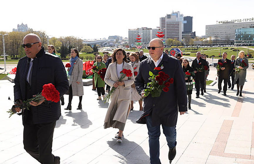 У символа непокоренности белорусской столицы – Стелы «Минск-город-герой» –склонили головы представители Мининформа и республиканских СМИ, в том числе руководство телеканала ОНТ. Те, кто рассказывает о цене Великой Победы и преступлениях против человечности. Одна из главных задач медиасообщества, как и всех белорусов, – не допустить повторения истории.