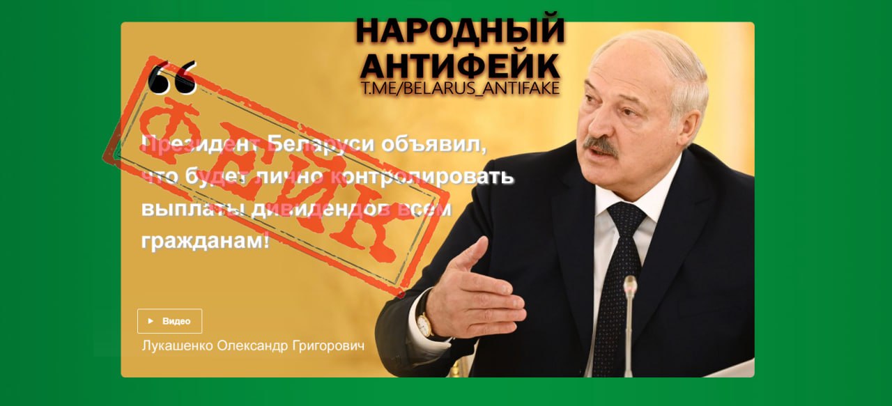 Обратите внимание – в рекламе указано, что данная «акция» поддерживается правительством Беларуси, а выплаты дивидендов будет контролировать лично Президент Александр Лукашенко. Это фейковая информация! Об этом свидетельствует хотя бы тот факт, что имя нашего Главы государства написано на украинский манер – «Олександр Григорович».
