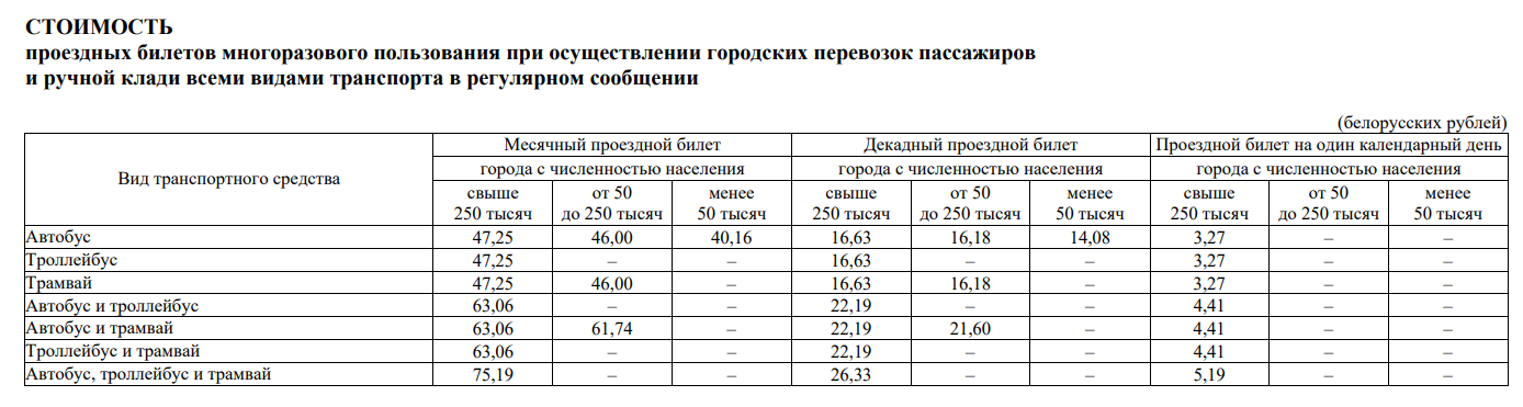 Также тарифы на проезд в транспорте изменились и в Брестской области.