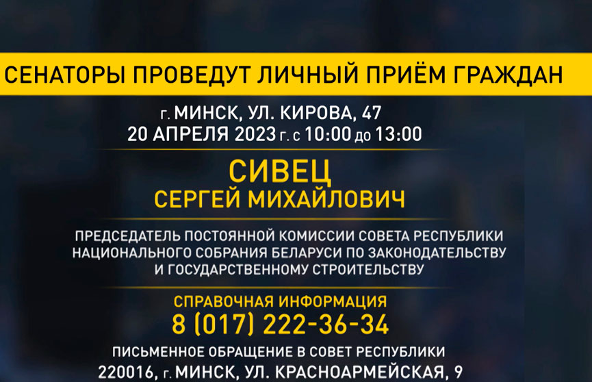 Также в этот четверг можно обратиться к председателю Постоянной комиссии Совета Республики по законодательству и государственному строительству Сергею Сивцу.