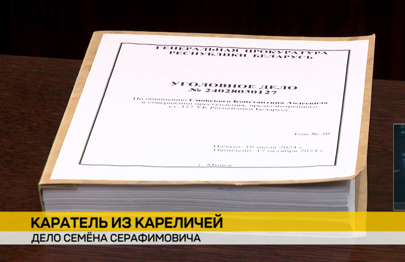Свидетели – потомки жертв карателя. В деле – 30 томов и более 50 свидетелей. О зверствах знают по рассказам отцов и дедов. В казнях Серафимович участвовал лично. Был начальником подразделения вспомогательной полиции в Кареличском районе. Причастен к гибели более 4 тысяч человек. Великобритания не выдала преступника при жизни, никакого наказания он не понес, несмотря на то, что известно о его прошлом было достоверно. Такое дело – третье. Ранее суд признал виновными военных преступников Катрюка и Смовского, ушедших от ответственности при жизни.