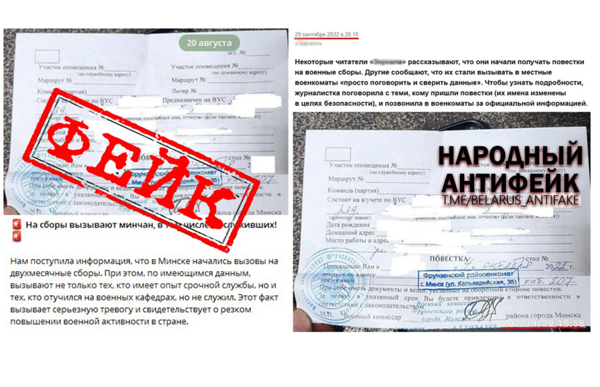 Согласно имеющейся информации, ряд экстремистских интернет-ресурсов опубликовал сообщение о том, что белорусы якобы получают повестки для участия в военных сборах. При этом авторы фейков особо подчеркивают, что на сборы вызывают даже граждан, которые не служили в армии.