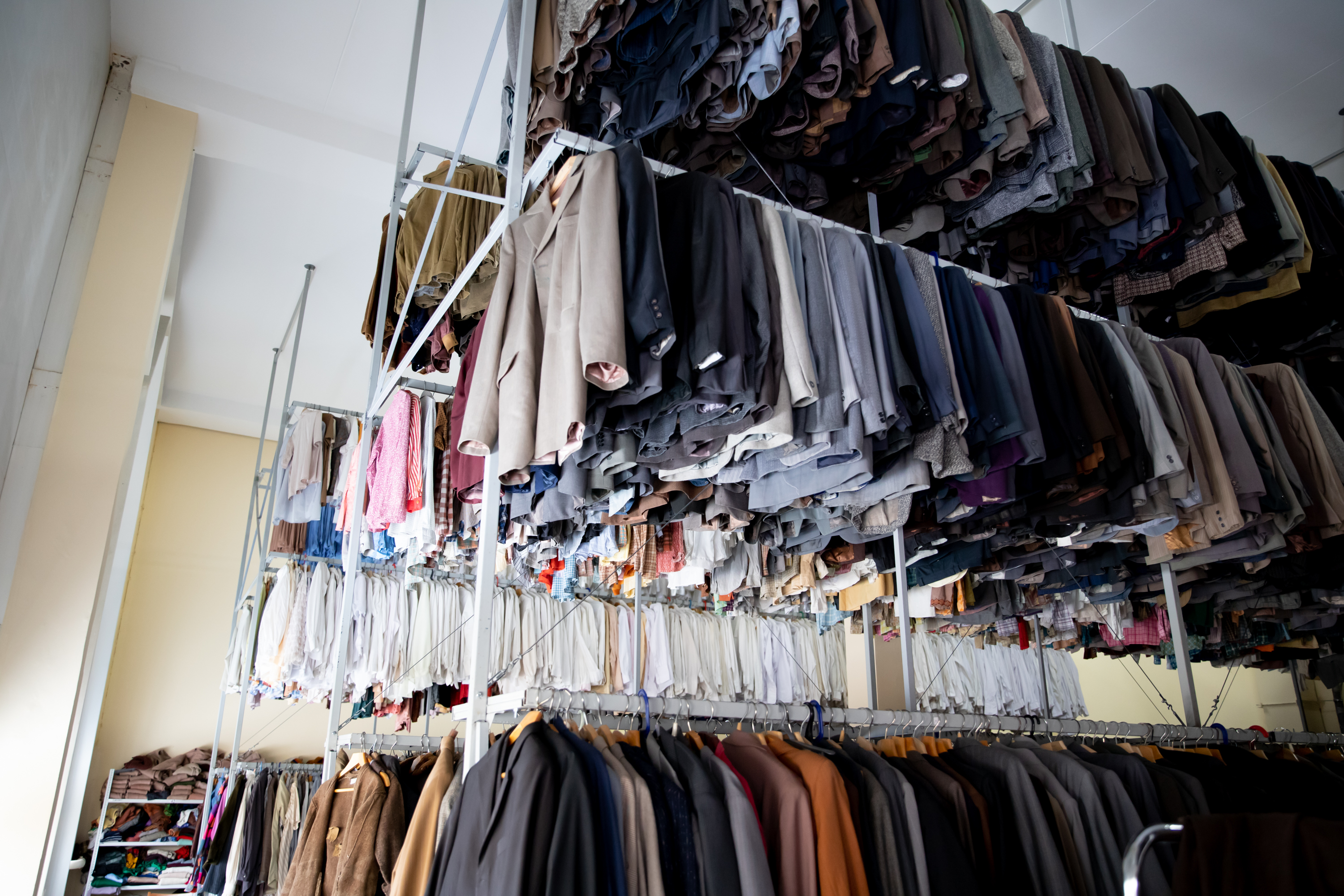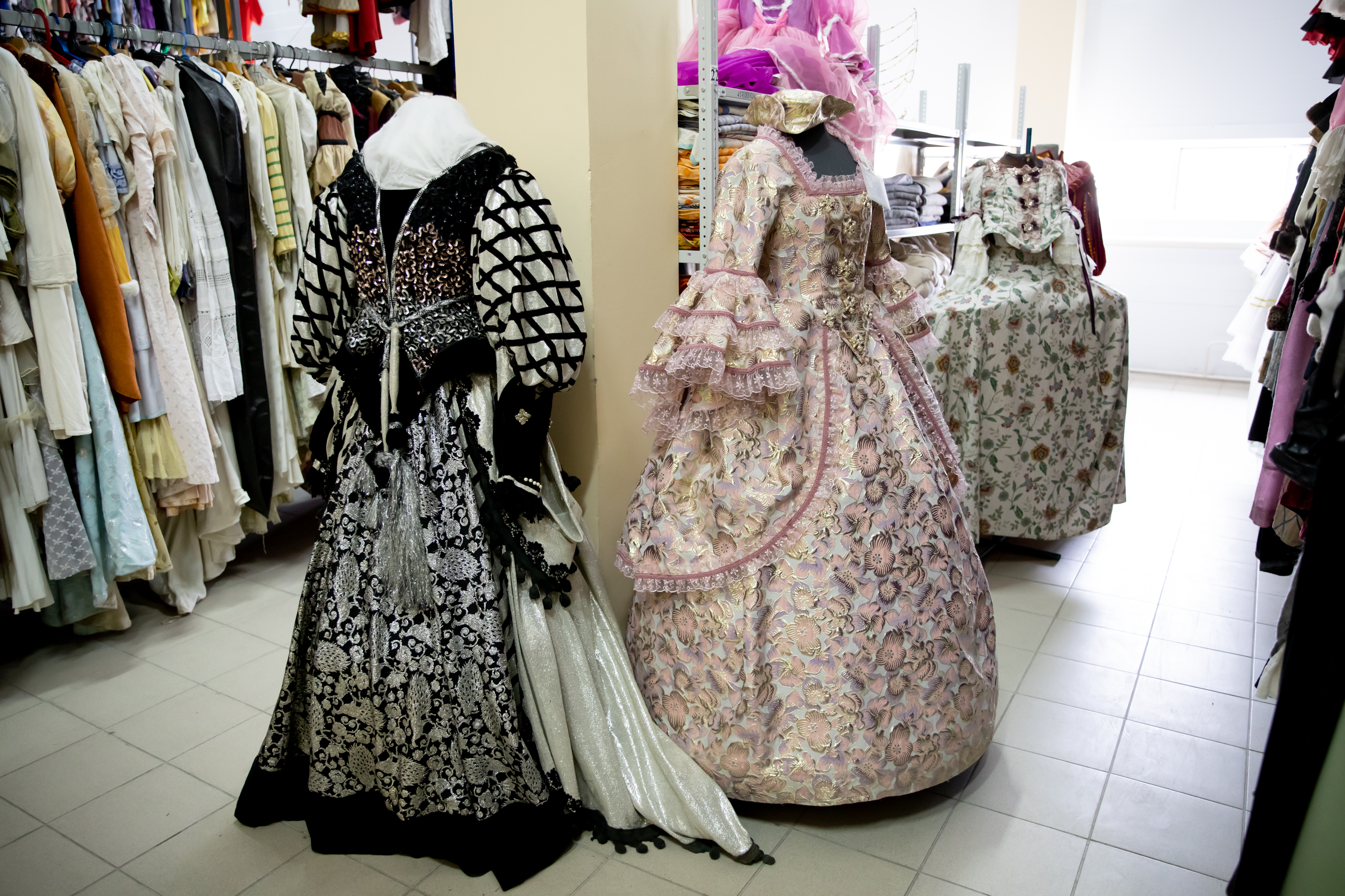 Склад мужской одежды. Здесь, например, хранятся костюмы из фильма «Буратино», а также одежда, которая использовалась в сериале «Чернобыль» от HBO