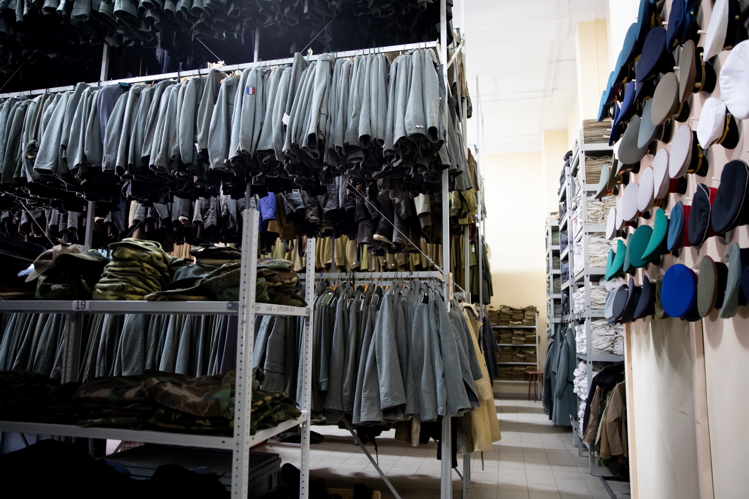 Склад военной одежды. 20 тысяч единиц формы, которая до сих пор используется для съемок