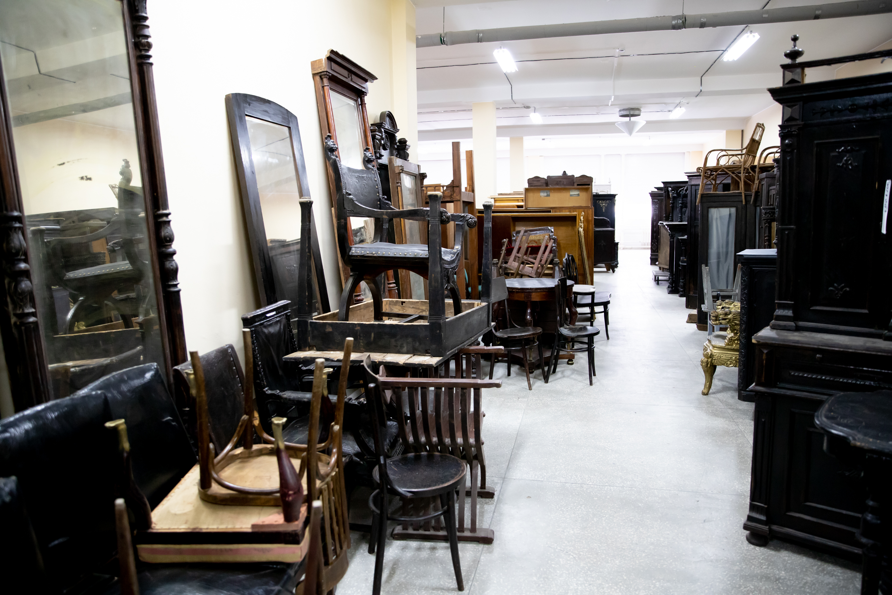 Мебельный склад, где собраны вещи разных эпох и стилей. Некоторым предметам более 100 лет!