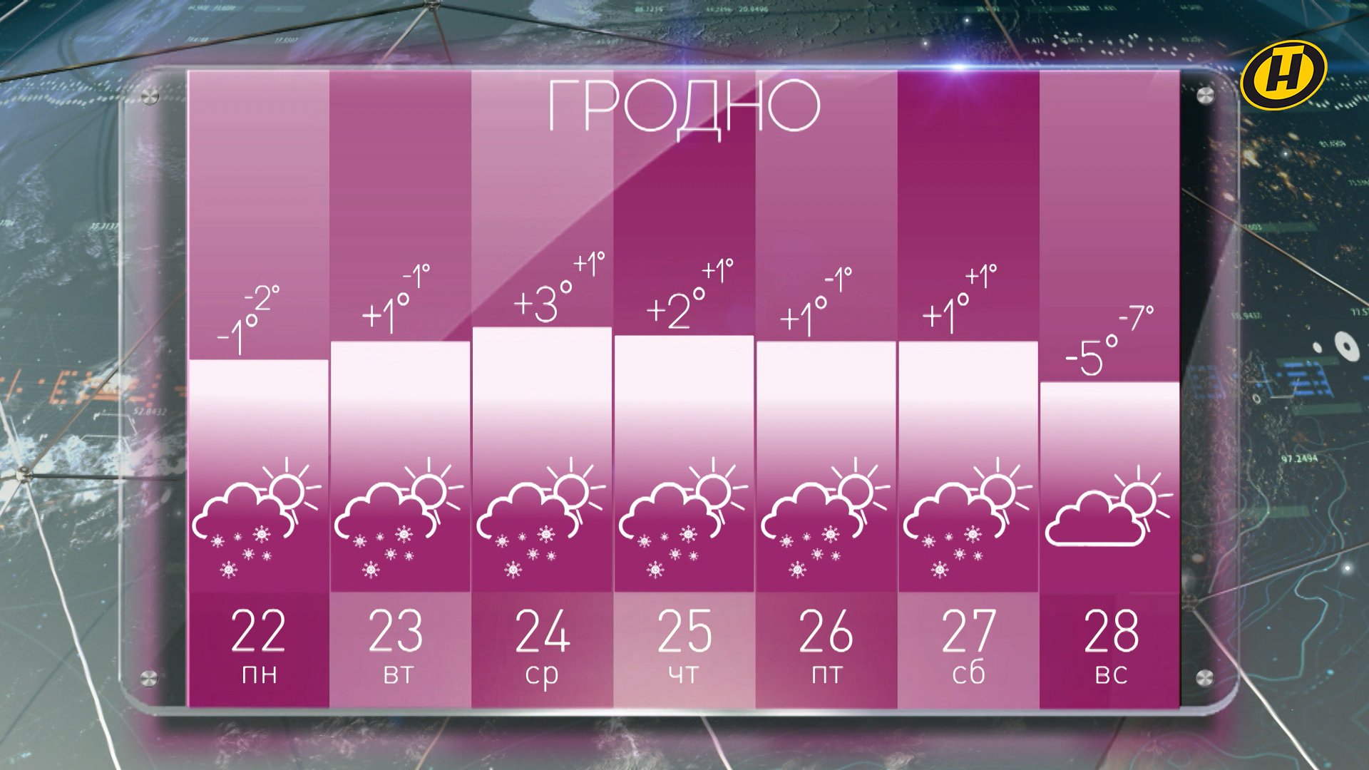 Погода в Гродно на неделе с 22 по 28 января: