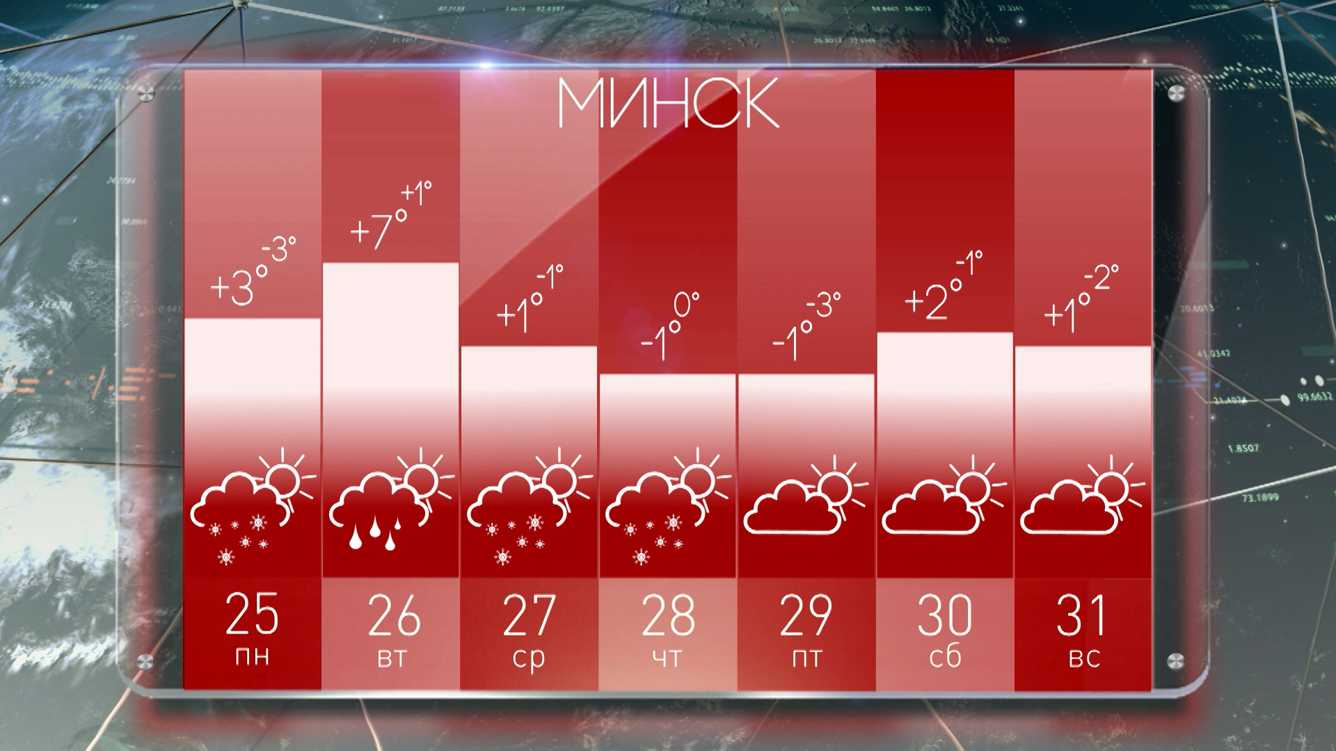 Погода в Минске на неделе с 25 по 31 декабря: