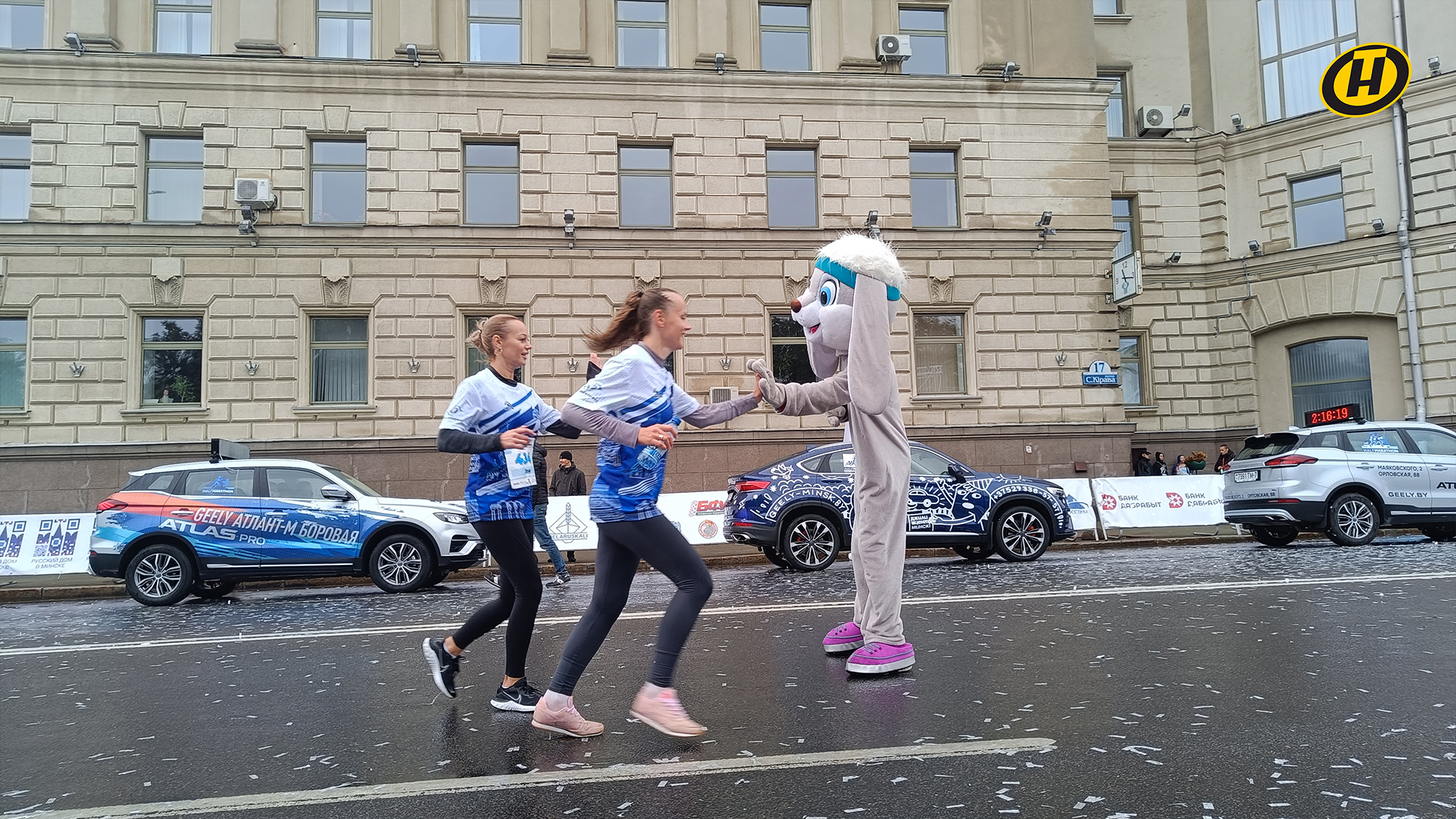 Перед финишем каждого участника встречал огромный заяц – он «давал пять» тем, кто преодолел дистанцию.
