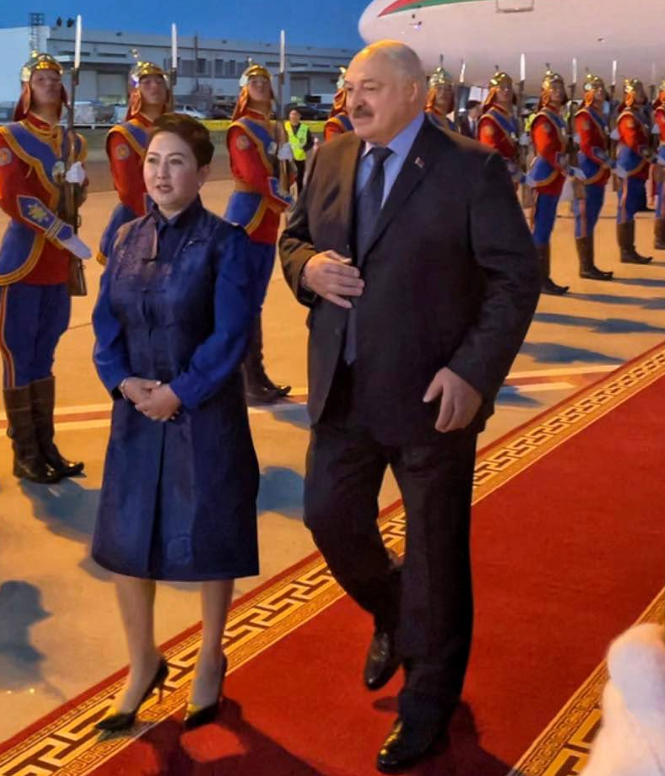 Министр иностранных дел Монголии – Батмунхийн Батцэцэг – встретила Александра Лукашенко у трапа, а после пригласила пройти вдоль строя роты почетного караула.