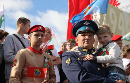 «В одном строю с защитниками Отечества – молодежь, рядом с военной техникой – техника мирной жизни. Победители завещали нам жить и строить будущее для новых поколений. Мы не подведем. Не имеем права», – заявил Глава государства.
